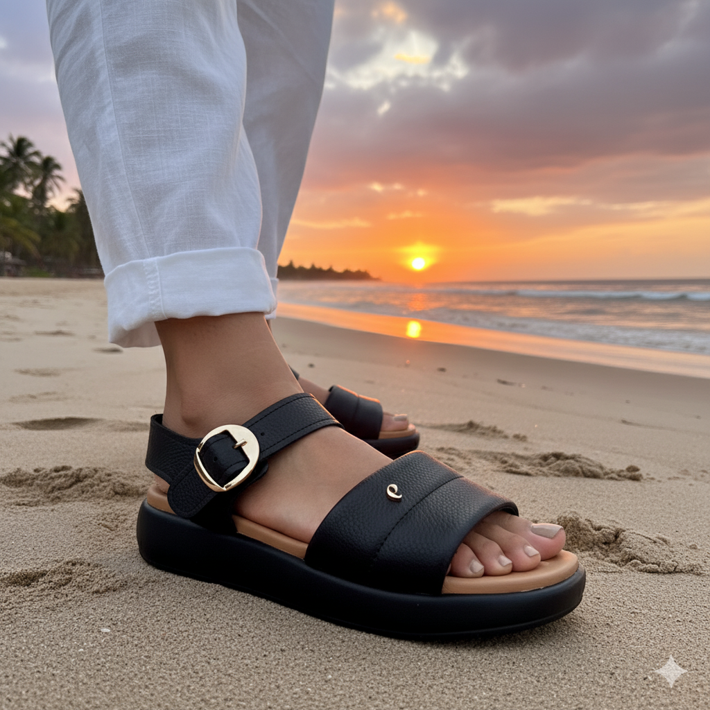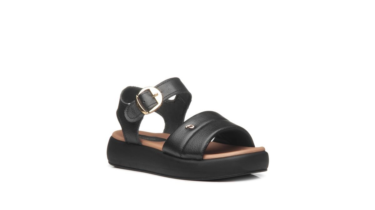 Sandalia Pegada Cuero Negra 233704